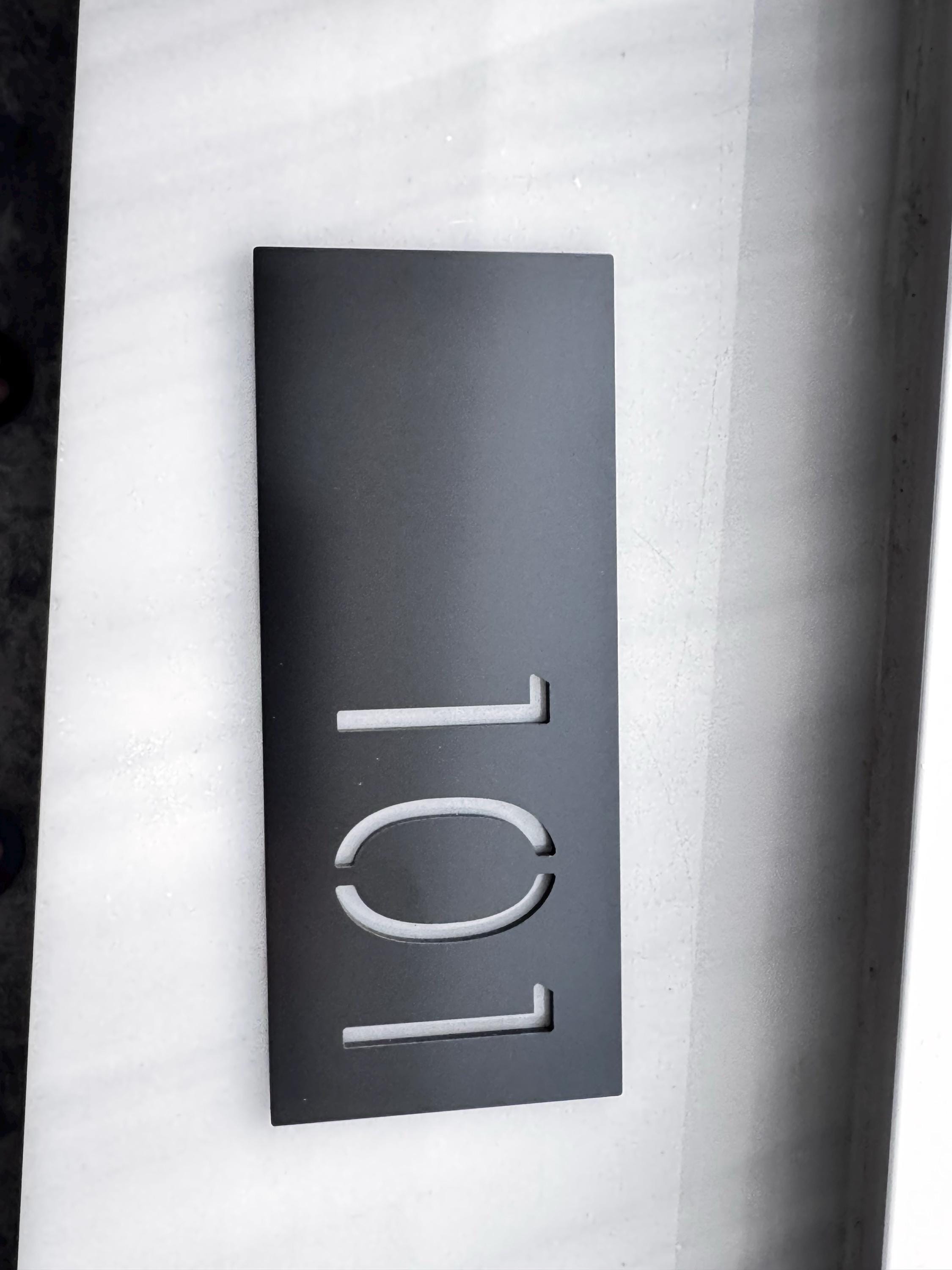 Add a unique contemporary touch to your home or office with this modern number plaque. Designed to combine style and functionality, this sleek sign enhances any exterior or interior space while ensuring your address is clearly visible.