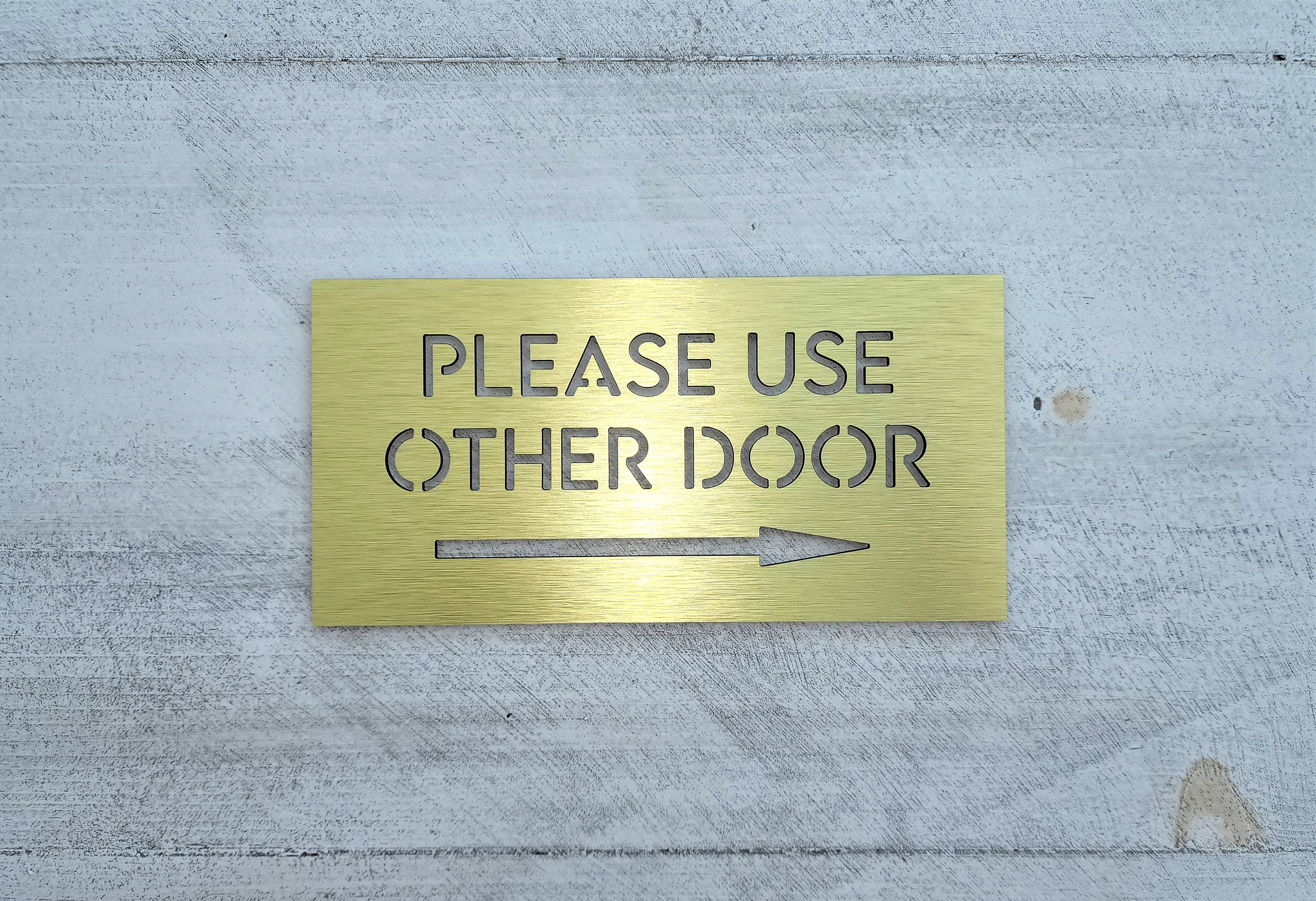 Rust free Please Use Other Door sign with arrow for outdoor and indoor use. Modern and sleek. Easy to install.