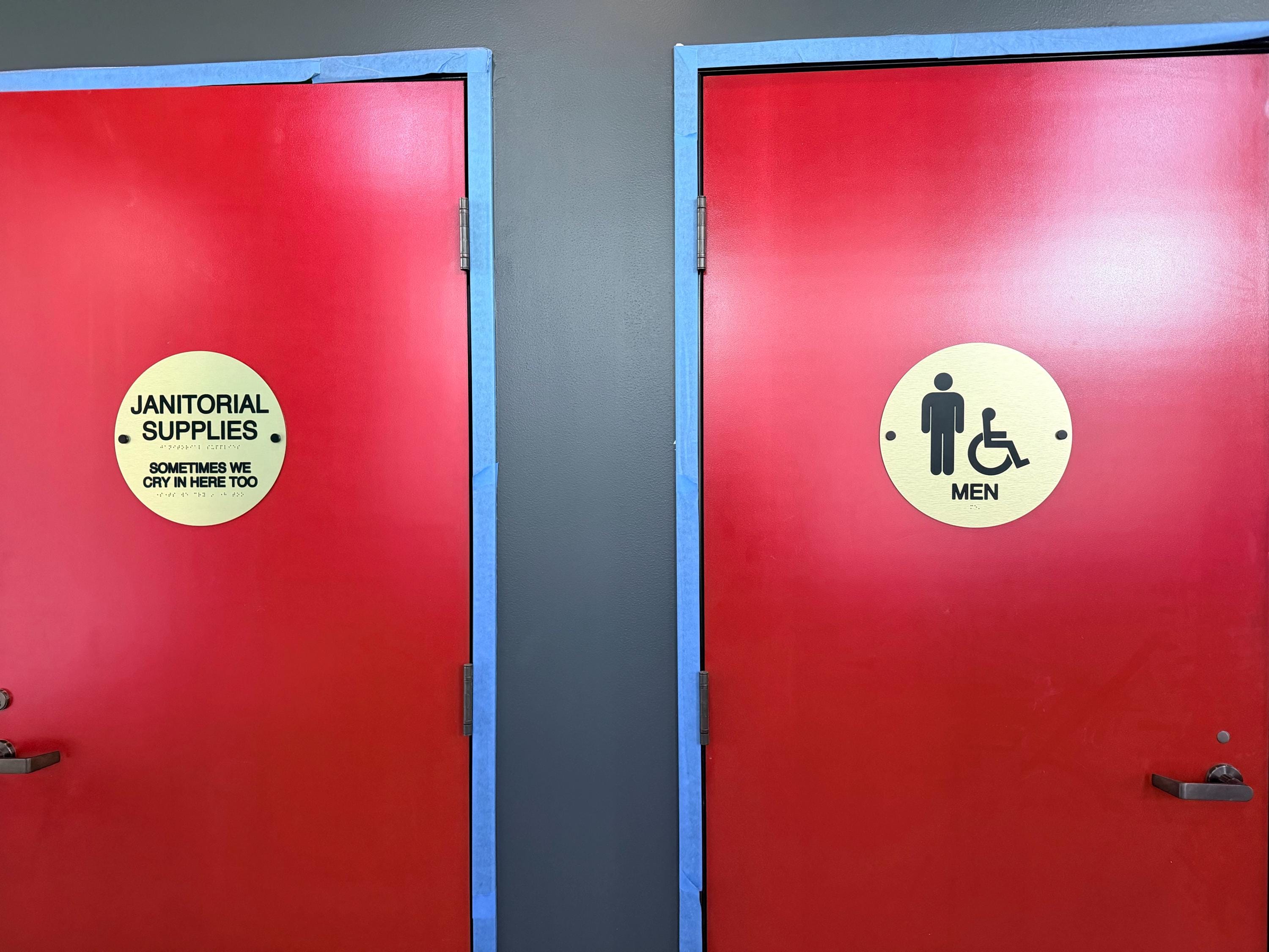 - ADA signs with braille and tactile elements should be installed on the latch side of the door to the room being identified.