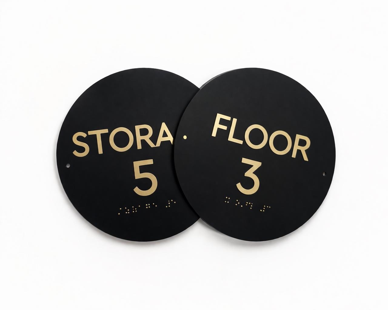 - Grade 2 Braille with domed (rounded) shape (meets Federal and California requirements)