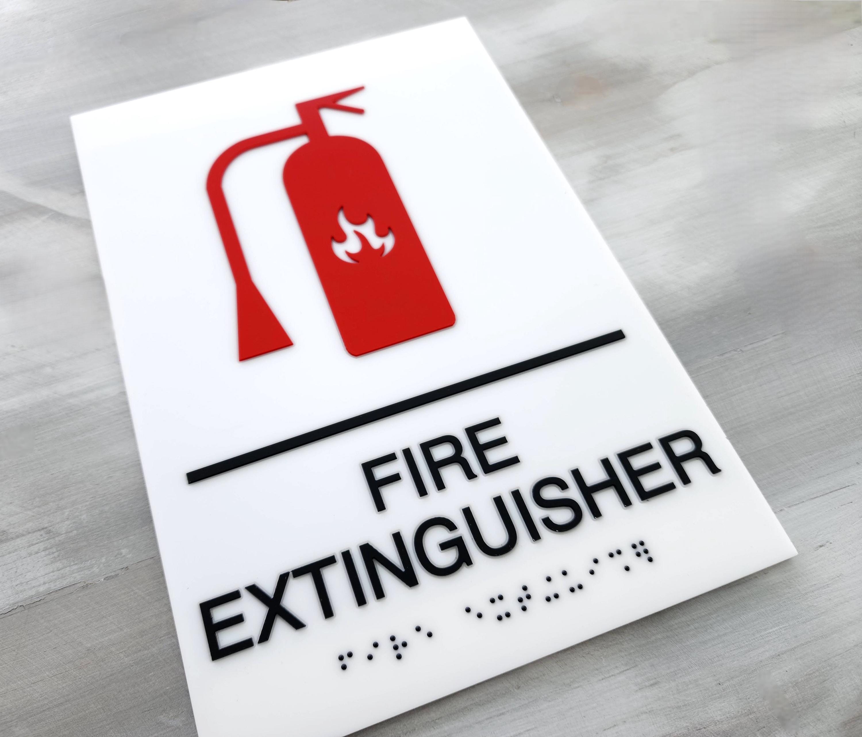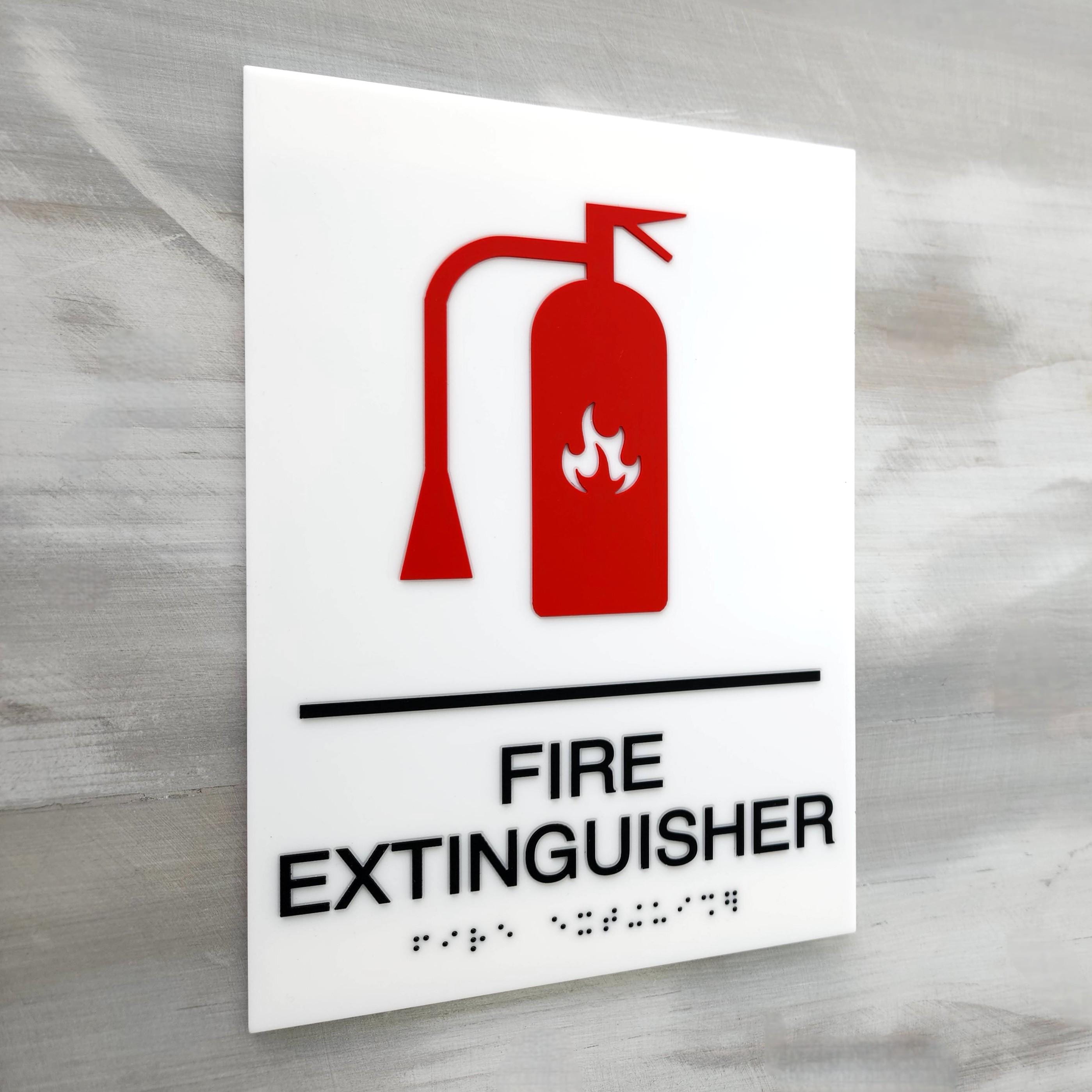 ADA compliant Fire Extinguisher sign with sleek and modern design. Perfect for marking the fire extinguisher location in hospitals, hotels, churches, schools and many more businesses.