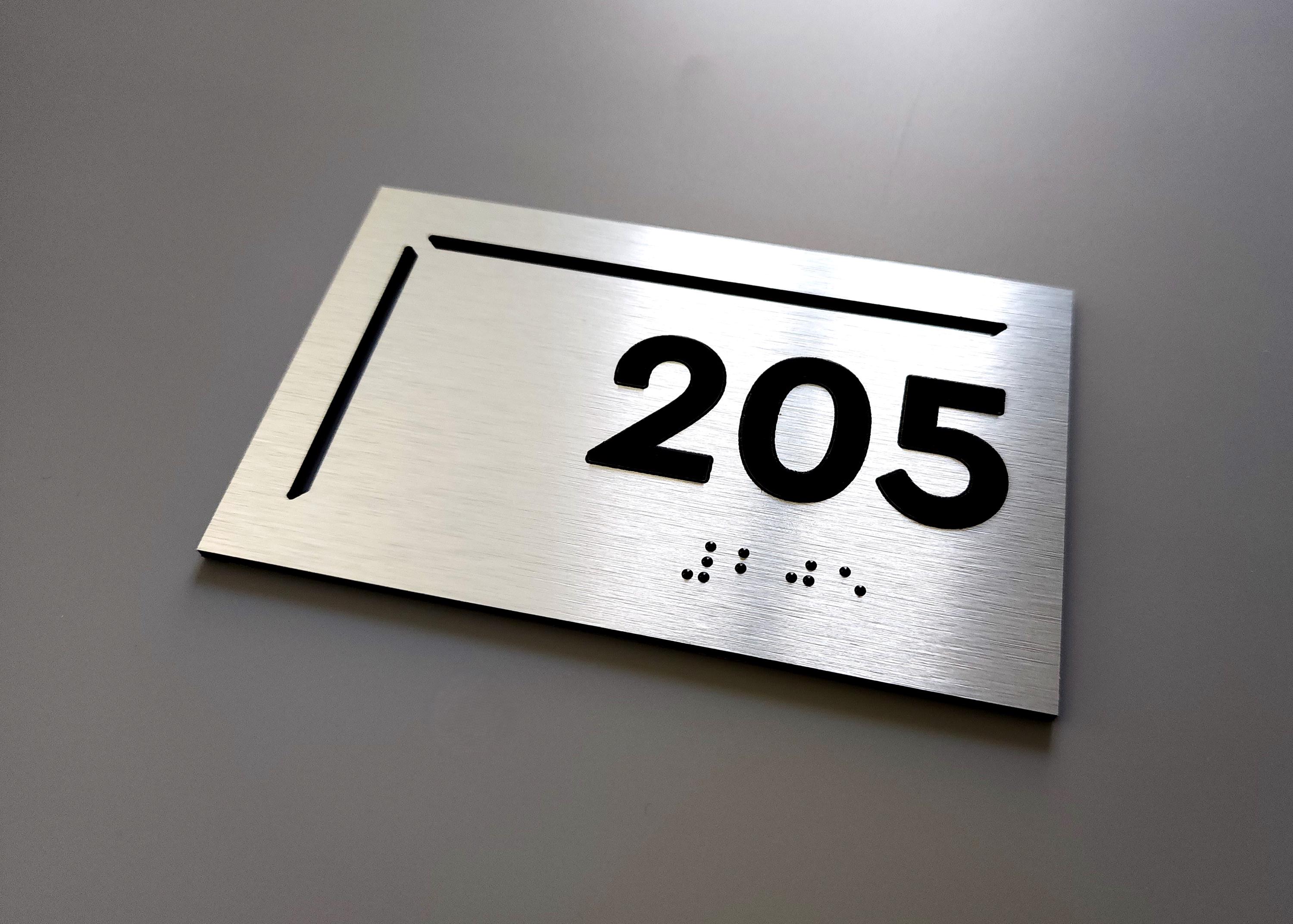 Colors: Brushed silver with black text and Braille