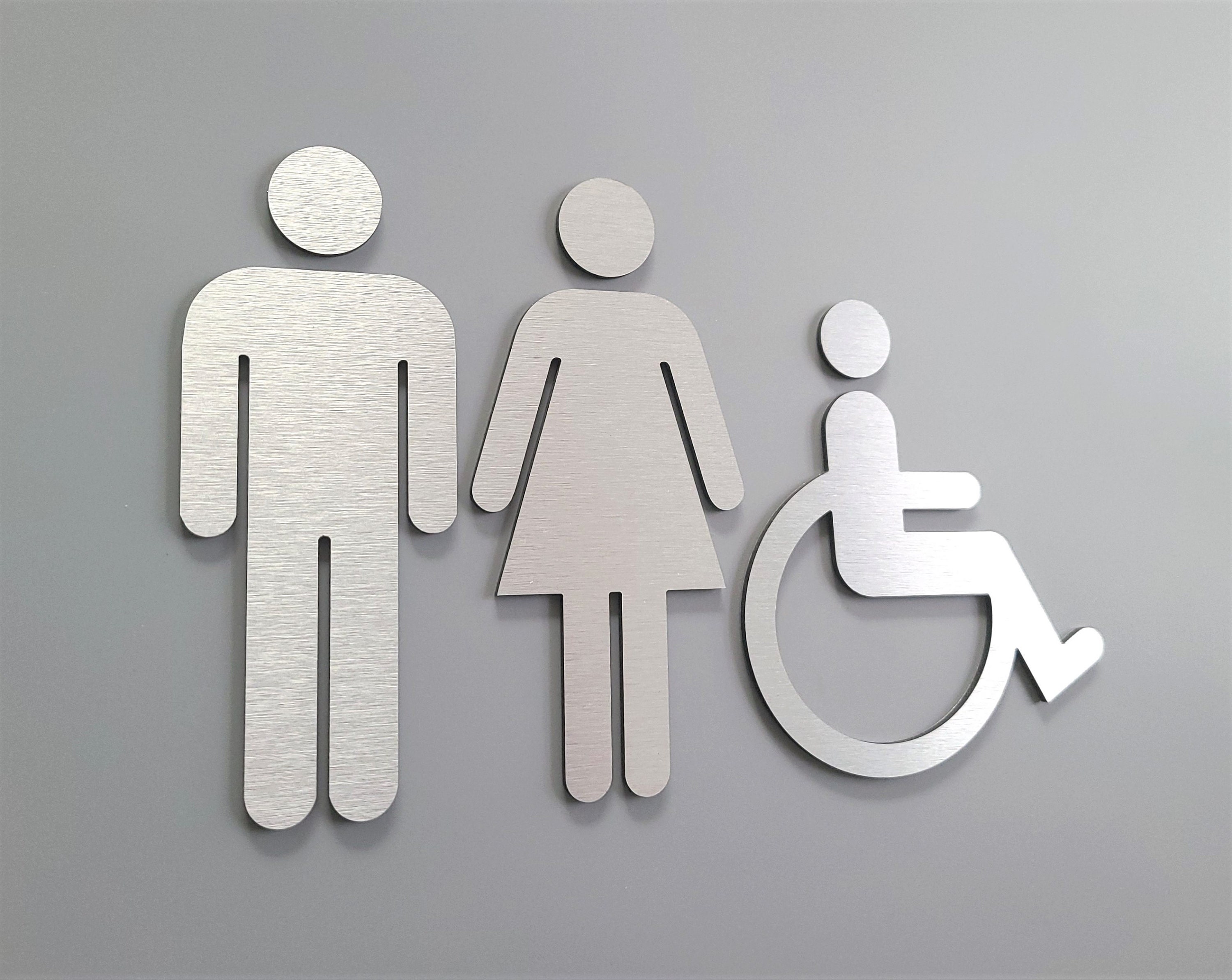 This listing is for one set of 3 restroom figures - male, female and handicap, adding unique contemporary touch to your home or business interior decor. It is great for any office, hotel or restaurant.