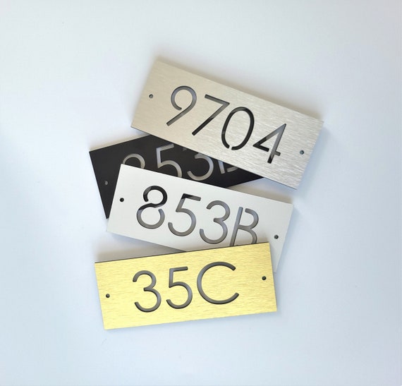 White apartment number signs. Hotel room numbers. Personalized address plaques. Interior door numbers. Office and exam room signage.